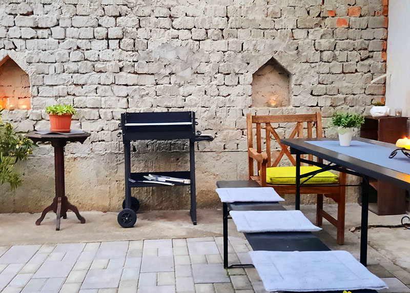 - Grill terasz: 2 mobil grill, bogrács, szalonnasütő, fa kerti bútor